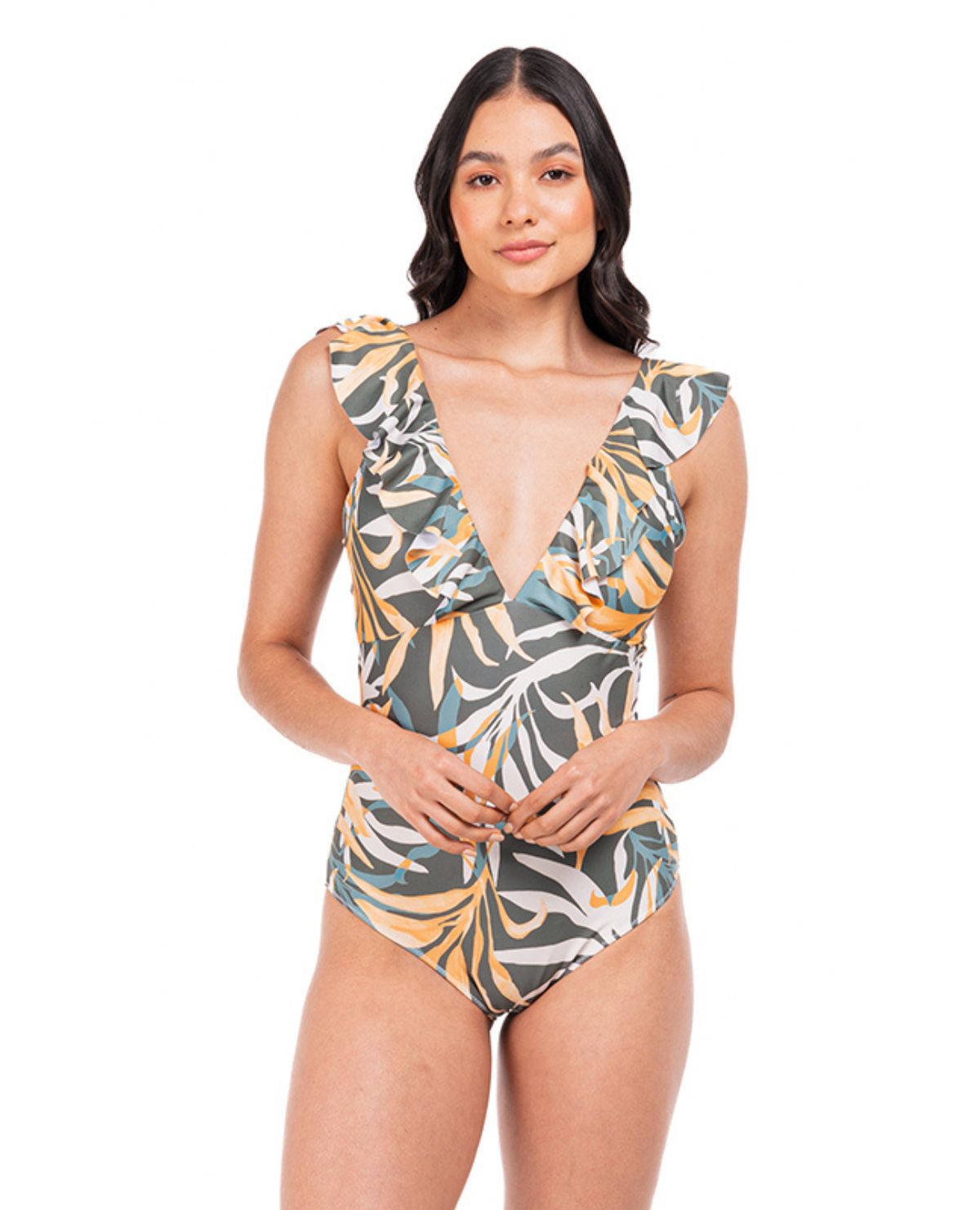 Vestido de baño entero con escote en V, control de abdomen suave que estiliza la figura, copas removibles y bolero desde el escote que te cubre de sensualidad. Poliéster/Elastano.   SKU: 990850700