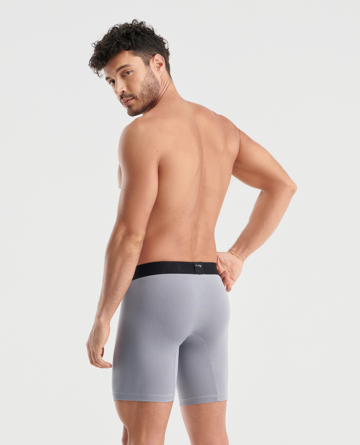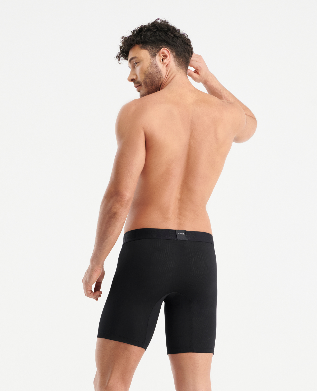 Este set de tres bóxers largos ha sido elaborado con un ajuste excepcional y un confort inigualable. Su cintura elástica y ancha garantiza un ajuste óptimo y una sujeción firme, mientras que el corte largo ofrece un equilibrio ideal entre libertad de movimiento y soporte. Ideal para quienes desean un toque de elegancia en cada detalle de su ropa interior. Elaborado en Poliéster/ Elastano/ Algodón