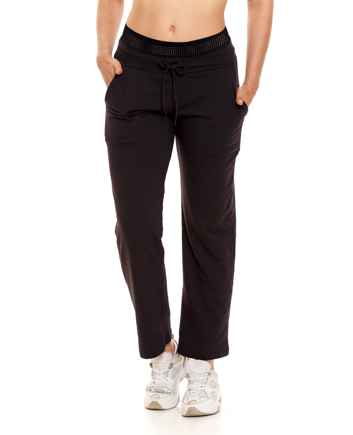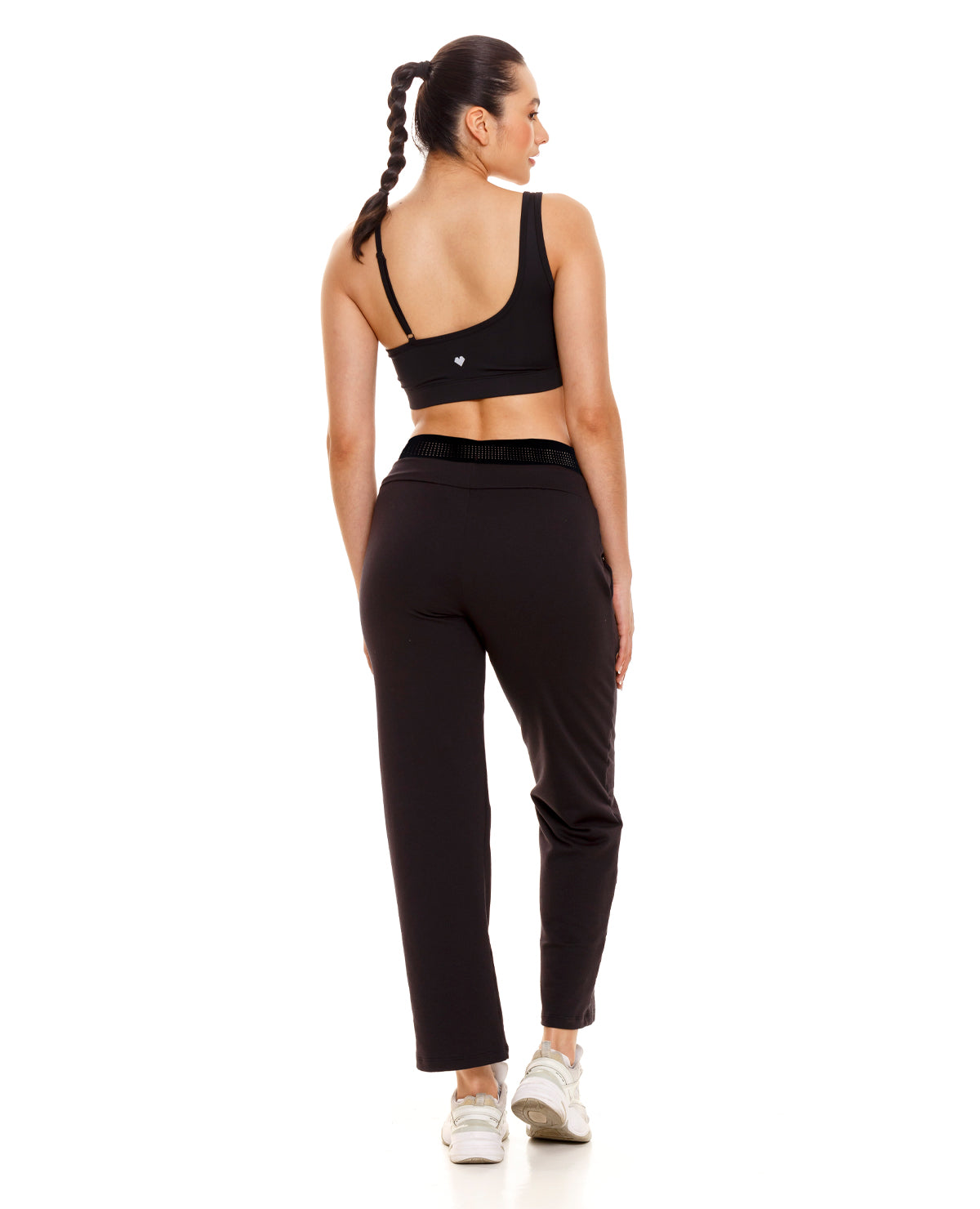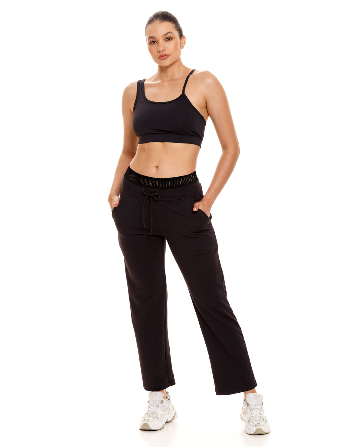 Pantalón largo de bota recta, cintura con banda elástica decorativa de talle alto, bolsillos en laterales, burda liviana de tejido suave y ligero. Poliéster/Algodón/Elastano.  SKU: 672880300