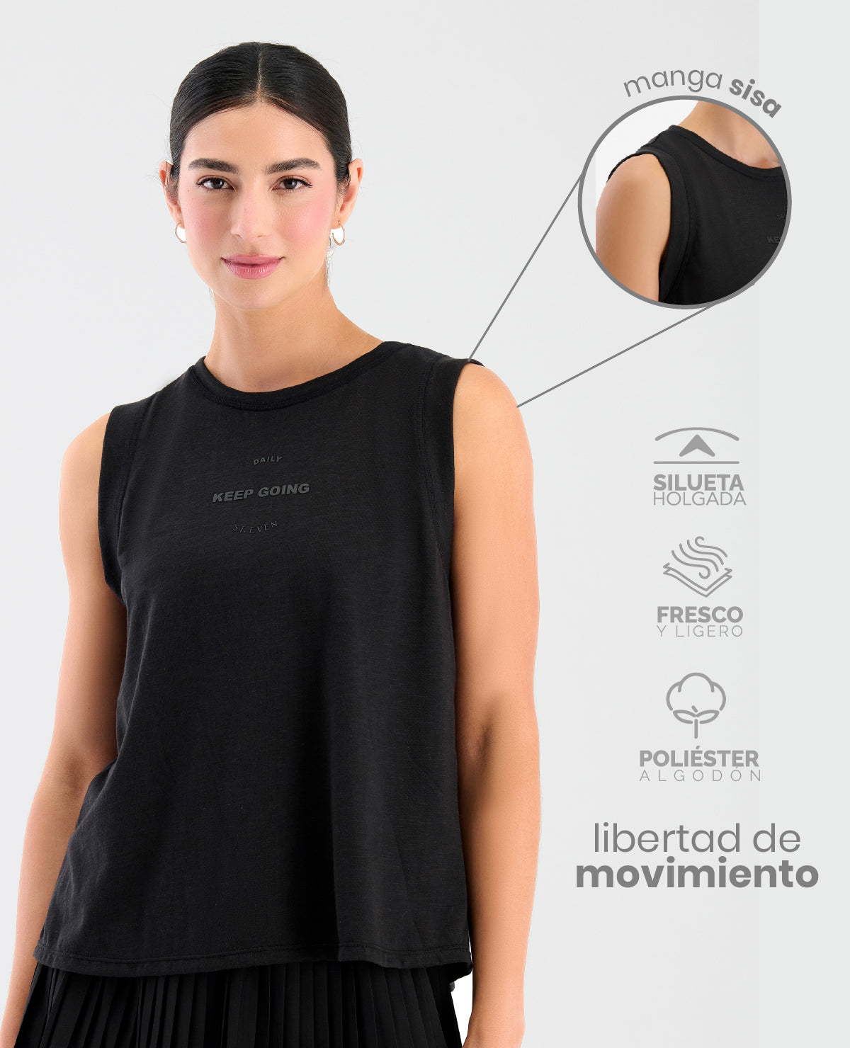 Camisilla manga sisa deportiva con el cuello redondo, con estampado al frente, corte amplio y ligero, que brinda libertad de movimiento. Algodón/ Poliéster  SKU: 682630300