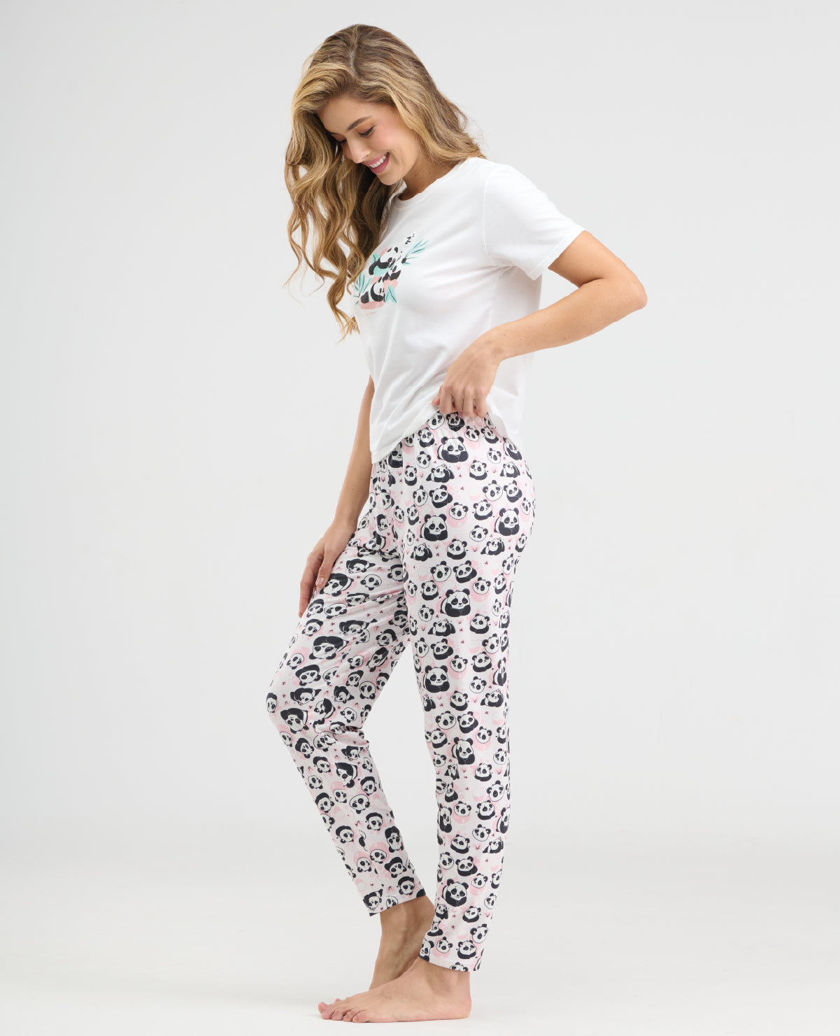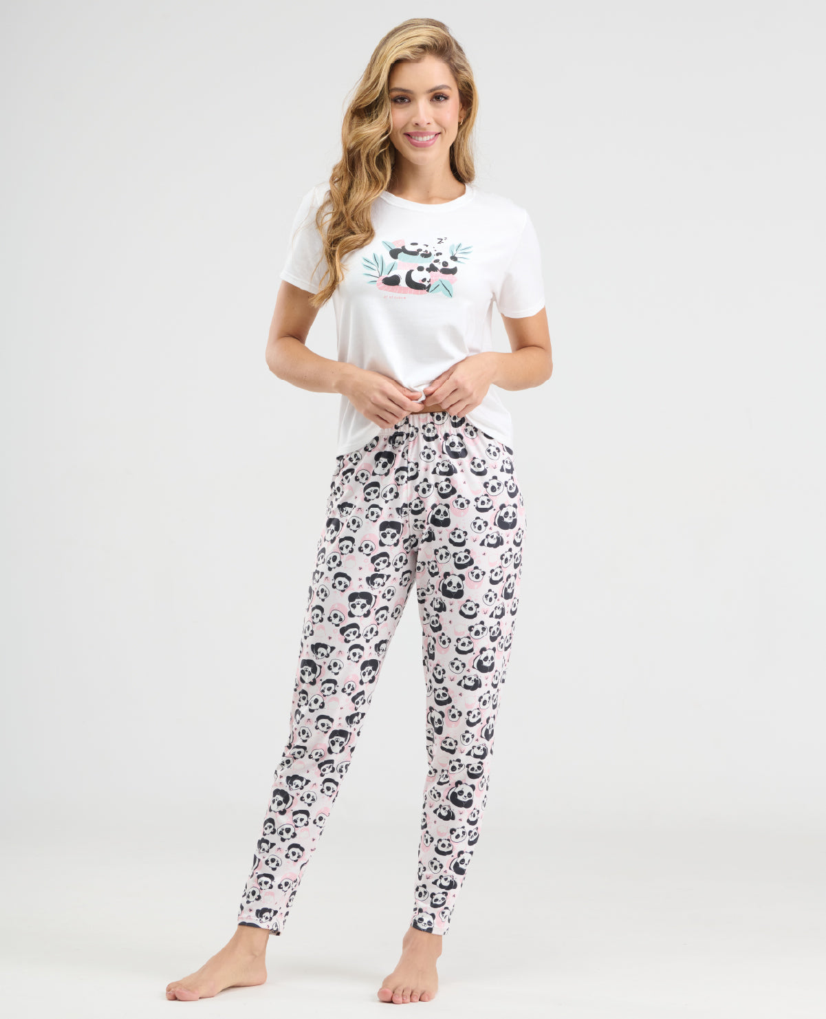 Pijama de silueta semi ajustada, cuello redondo y manga corta. Su estampado en el frente recarga de alegría el look. El pantalón con elástico en la cintura y ajuste en tobillo ofrece mayor comodidad. Poliéster / Elastano.  SKU: 185981526