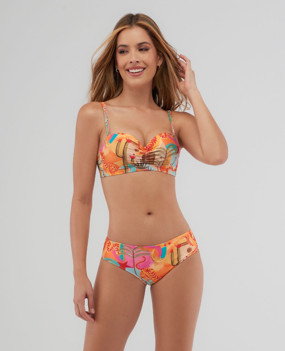 Haz una declaración de estilo en la playa con nuestro moderno conjunto de baño de dos piezas. El top strapless se asegura con un amarre tipo broche y ofrece copas fijas para realce suave, junto con cargaderas ajustables y removibles para versatilidad. La banda elástica en la base del busto proporciona soporte adicional. Complementado por un panty semi descaderado de corte anatómico, con recogido en la parte posterior para un ajuste perfecto. Fabricado en una mezcla de poliéster y elastano para una sensación cómoda y elástica. ¡Brilla con confianza bajo el sol con este elegante conjunto!  SKU: 994901400